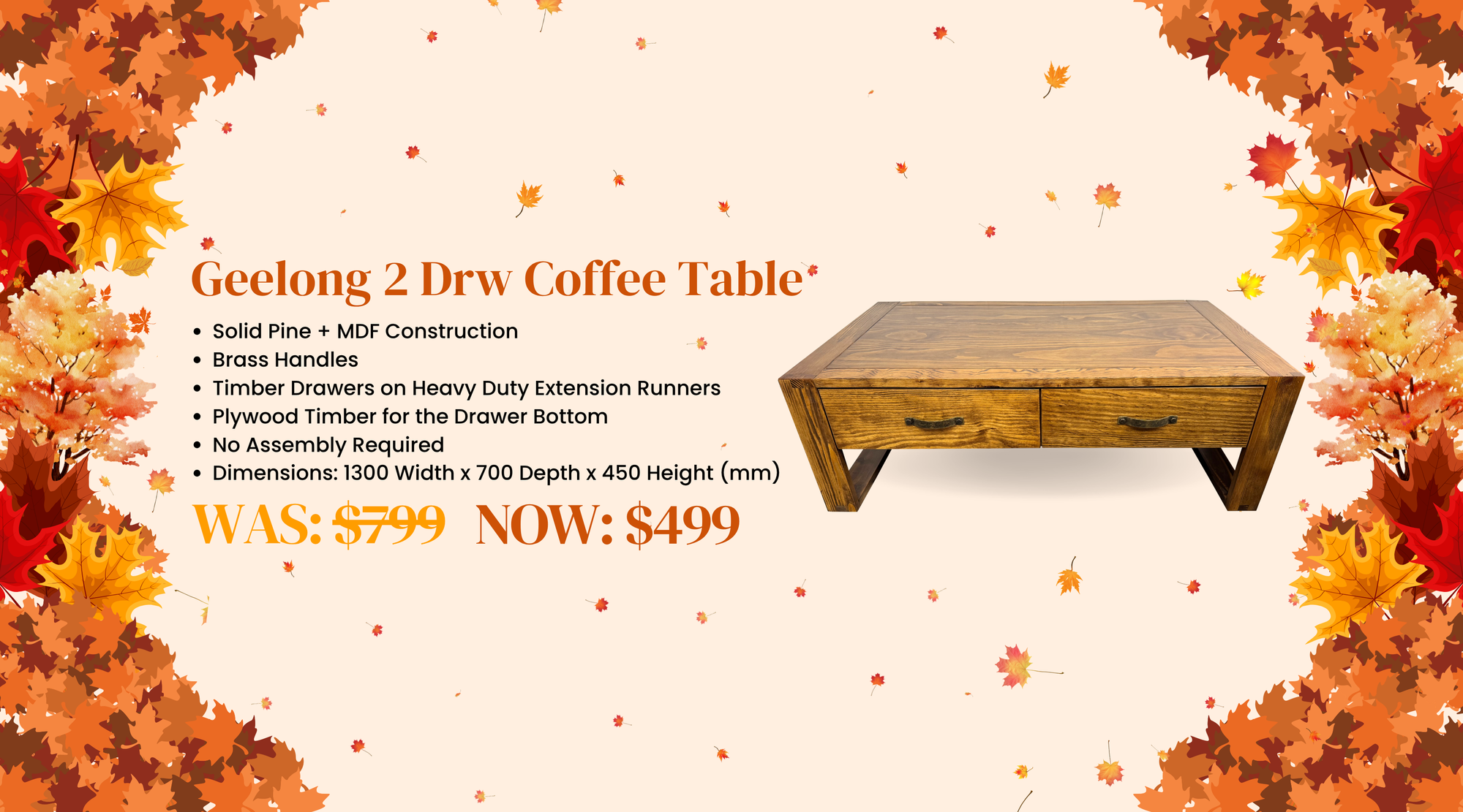 View full detailsGeelong 2 Drw Coffee Table Functional Centrepiece for Everyday Living: The Geelong Coffee Table combines practical storage with a clean and simple ...