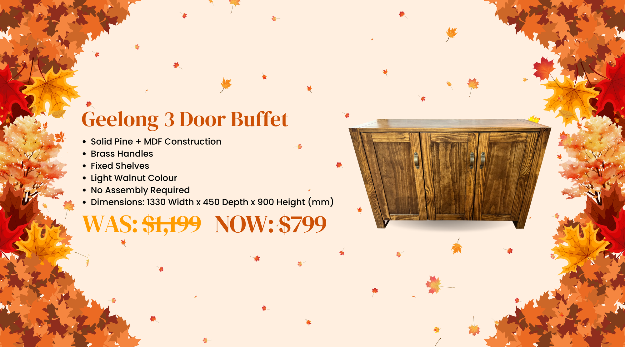 View full detailsGeelong 3 Door Buffet Practical Storage with Clean Design: The Geelong Buffet offers generous internal storage with a simple and functional design,...
