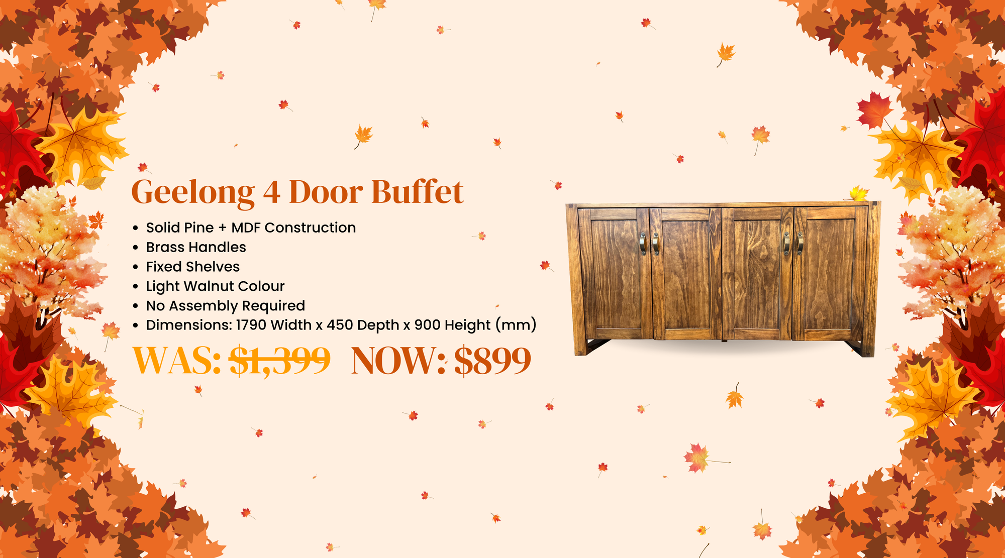 View full detailsGeelong 4 Door Buffet Spacious Storage with Practical Design: The Geelong 4 Door Buffet offers generous internal storage with a clean and functiona...