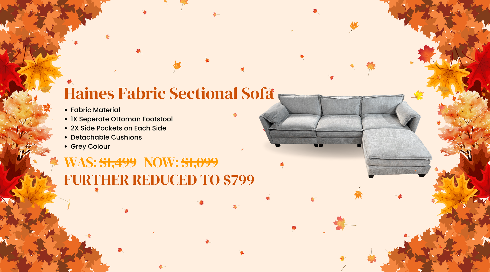 View full detailsHaines Fabric Sectional Sofa with Ottoman WAS: $1499, NOW: $1099, Autumn Sale: $799 Introductory Special Offer Price: For a limited time, enjoy the...