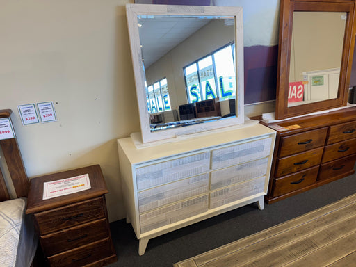 Balmain 6 Drw Low Chest with Mirror Available in Port Kennedy Store Only Rustic Style with Practical Storage: Add character and functionality to yo...